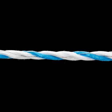 Corda per recinzione elettrica 500 m, carico di rottura 590 kg, resistenza elettrica 2,3 Ω/m.